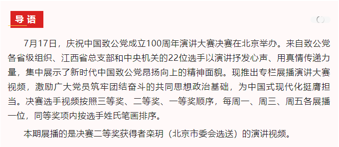 【视频】庆祝中国致公党成立100周年演讲大赛决赛选手视频展播(十八)
